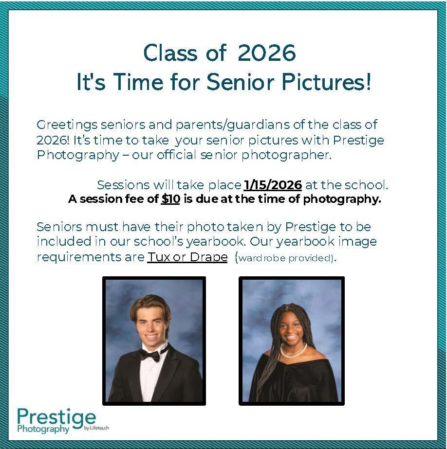 Seniors must have their photo taken by Prestige to be included in our school’s yearbook. Our yearbook image